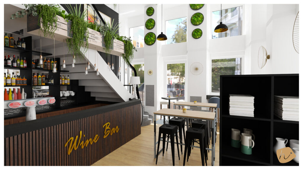 - Il s’agissait de peindre certains pans de murs mais aussi une partie du plafond pour créer l’effet d’une « boite » qui viendrait visuellement délimiter l’espace tout en apportant du caractère.