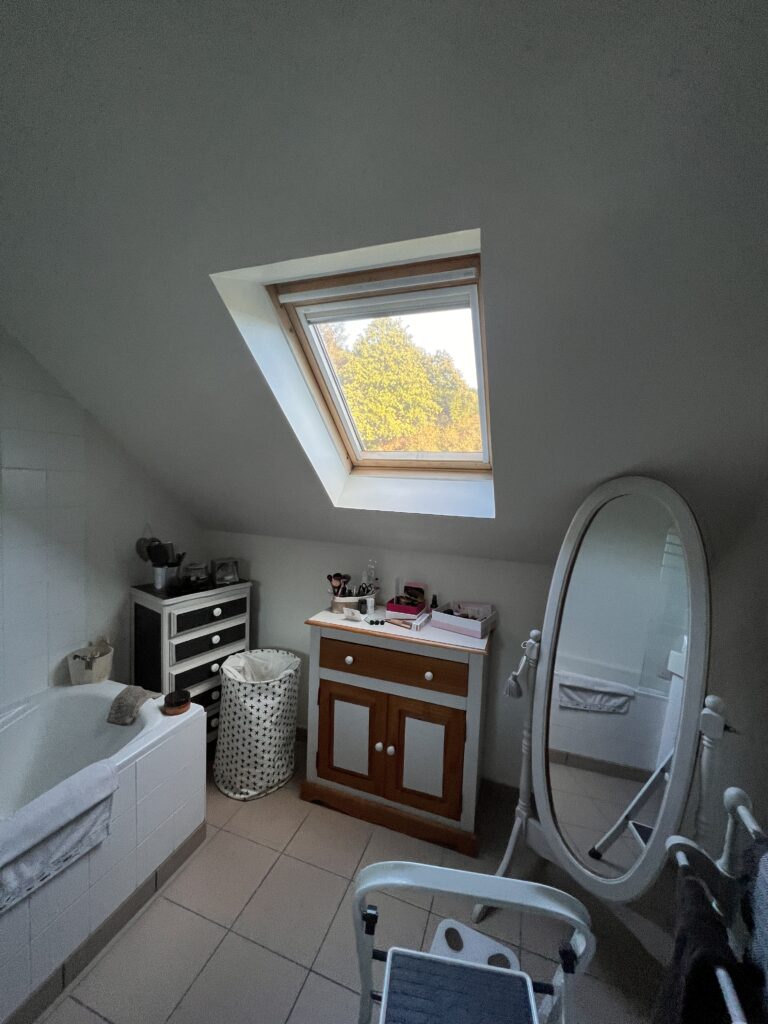 - Création d’une baignoire : Aménager un espace bain sous la fenêtre de toit.