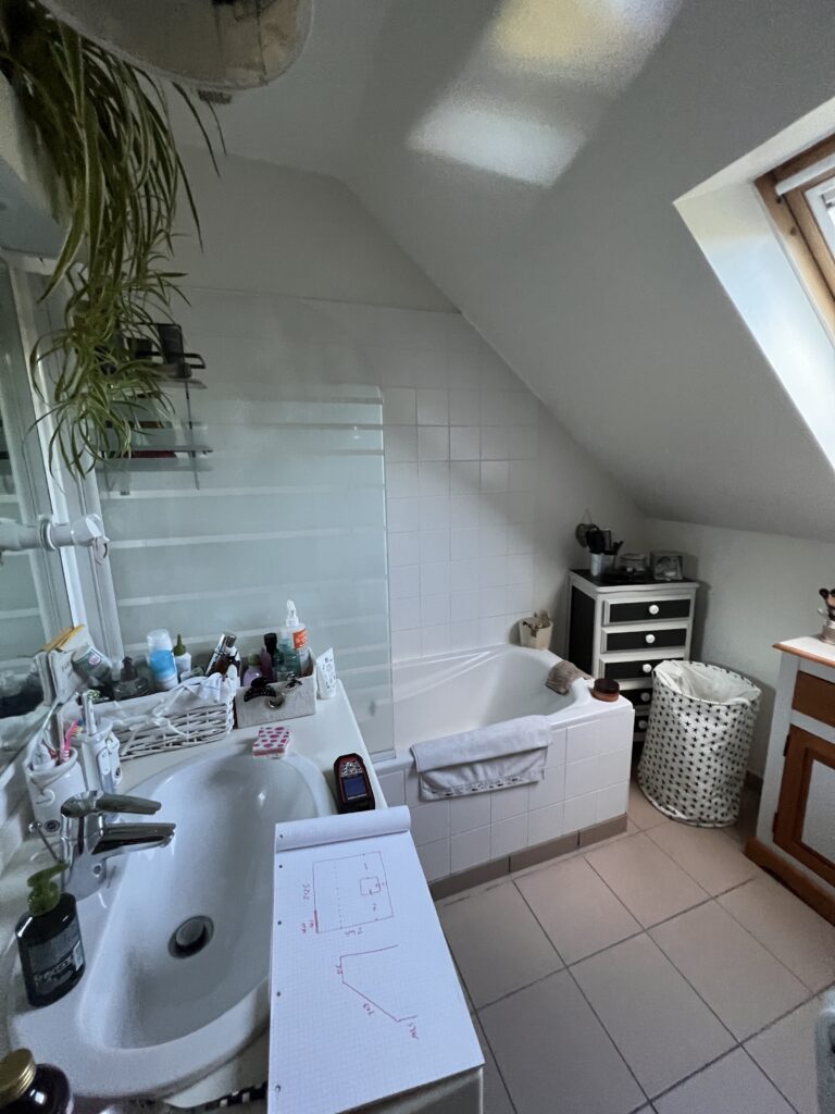 Besoin de la cliente : Repenser totalement l’agencement de la salle de bain.